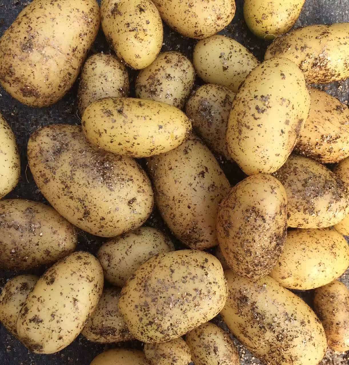 The seedling is spreading and green. The stem is green and its cross section is triangular shape. It has green leaves, flat leaf margins, and elliptic compound leaves growing alternating and oppositely. The stipule is obovate. Cymose flower bud is elliptic and green. The sepal is green and lanceolate. The corolla is light purple with pointed petal and the pointed end is white color. The pistil stylus is medium-long and the stylus head is rounded, amitotic and green. 5 stamens are conical and yellow, without natural berry. The potato is long-oval, and the potato meat is white with tight density. The bud eye is shallow and has 9.30±1.70 bud eyes. The potato tuberization is evenly and the dormant period is 30±2 days. The yield per plant is 0.43±0.01kg, the fruit number of single potato is 4.35±0.26 pieces, and the weight of single potato is 0.10±0.01kg. The potato starch content is 16.26%, Vc15.47mg/100g, reducing sugar content is 0.27% and dry matter is 21.11%. It is a medium maturing variety and its whole growth period is 120±3 days. It has medium cold endurance and weak drought resistance. The storability of the potato is medium. It is resistant to ring rot.