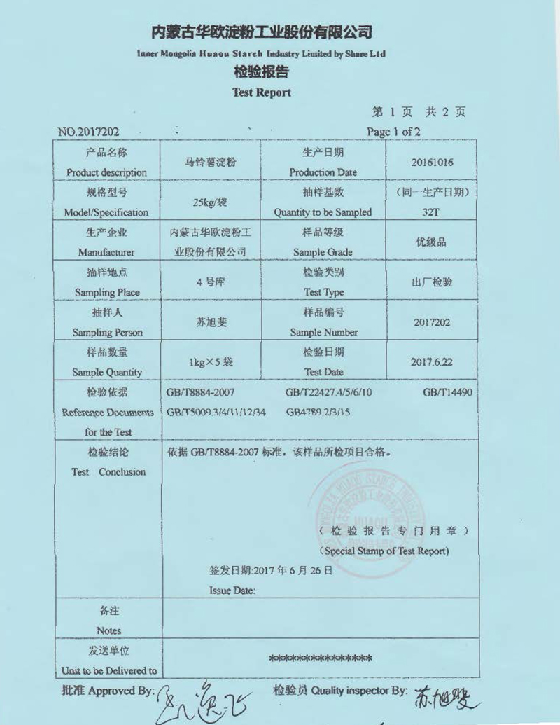 Copyright ? 2017 Inner Mongolia Huaou Starch Co., Ltd. All Rights Reserved. Meng ICP License No.11002480-1 Mongolian public network equipmentMeng Public Network Security License No.15012302000160 Website Map
